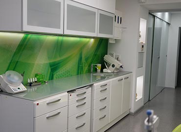 За да можем възможно най-бързо да Ви осигурим Вашите нови зъби, работим с наша собствена зъботехническа лаборатория. Предимствата са налице: не само спестяваме пътувания от и до лабораторията, но и по този начин зъботехниците ни могат лично да прегледат Вас и Вашите зъби. Няма по-добри условия за постигане на перфектни резултати по отношение на форма и на цвят.